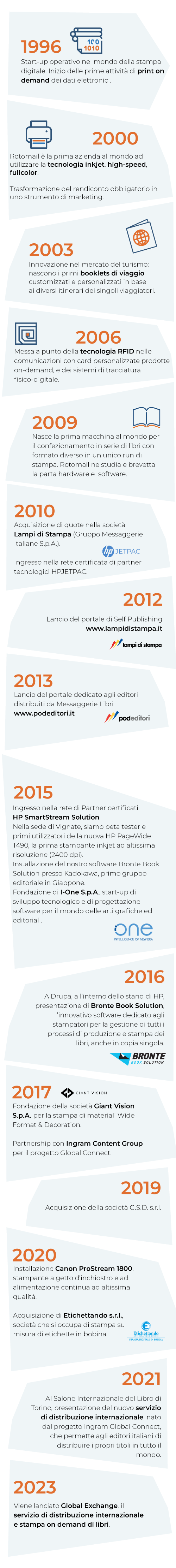 Da precursori delle comunicazioni transpromo allo sviluppo di portali innovativi per la realizzazione di libri e booklet di viaggio: La nostra storia racconta il costante percorso di ricerca e sviluppo di soluzioni in grado di anticipare ed interpretare le esigenze dei mercati.